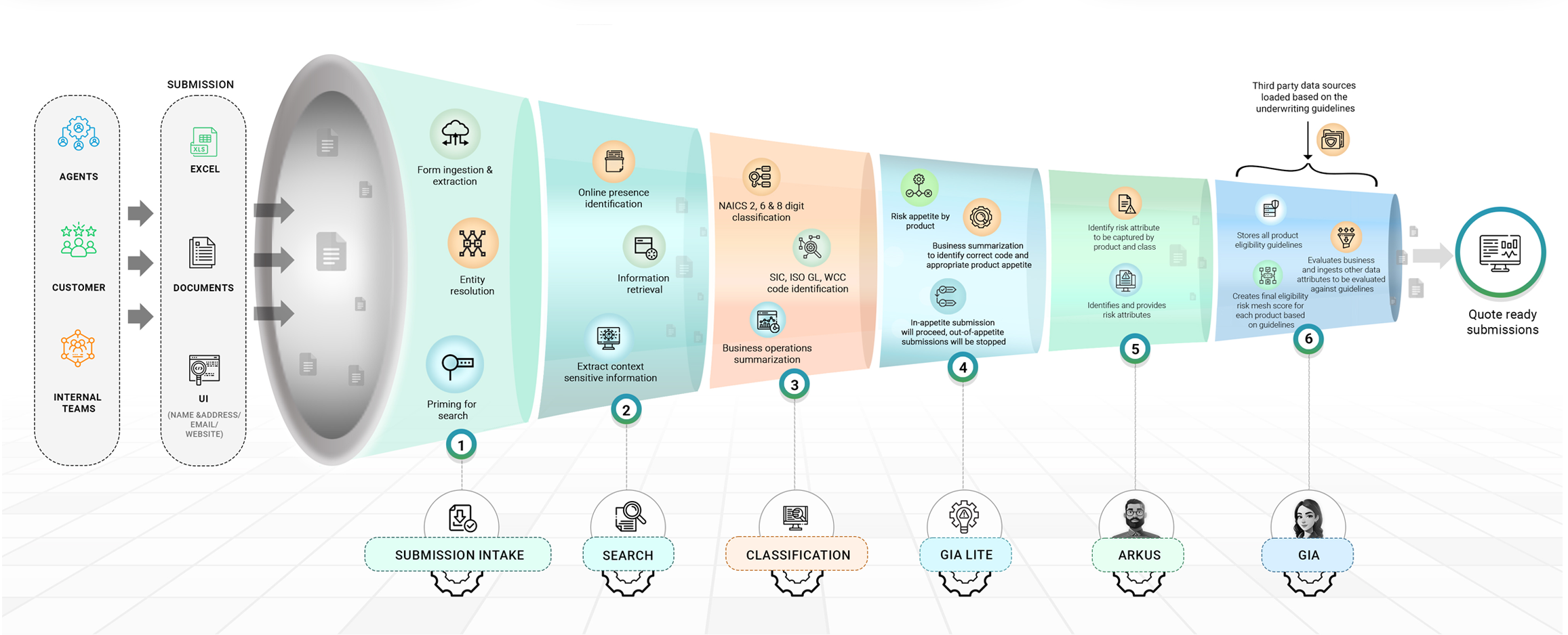 With AI assistants GIA and ARKUS, insurer and program administrator/MGA underwriting teams can efficiently refine in-appetite risk selection, enrich exposure analysis, improve pricing and quoting accuracy, and enhance service to agents and policyholders.